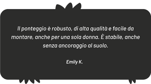 La durata è uno standard per noi. Con un po' di cura, potrete godervi il prodotto molto più a lungo. Basta controllare di tanto in tanto se tutto è ancora ben saldo e rimuovere lo sporco con un panno umido.